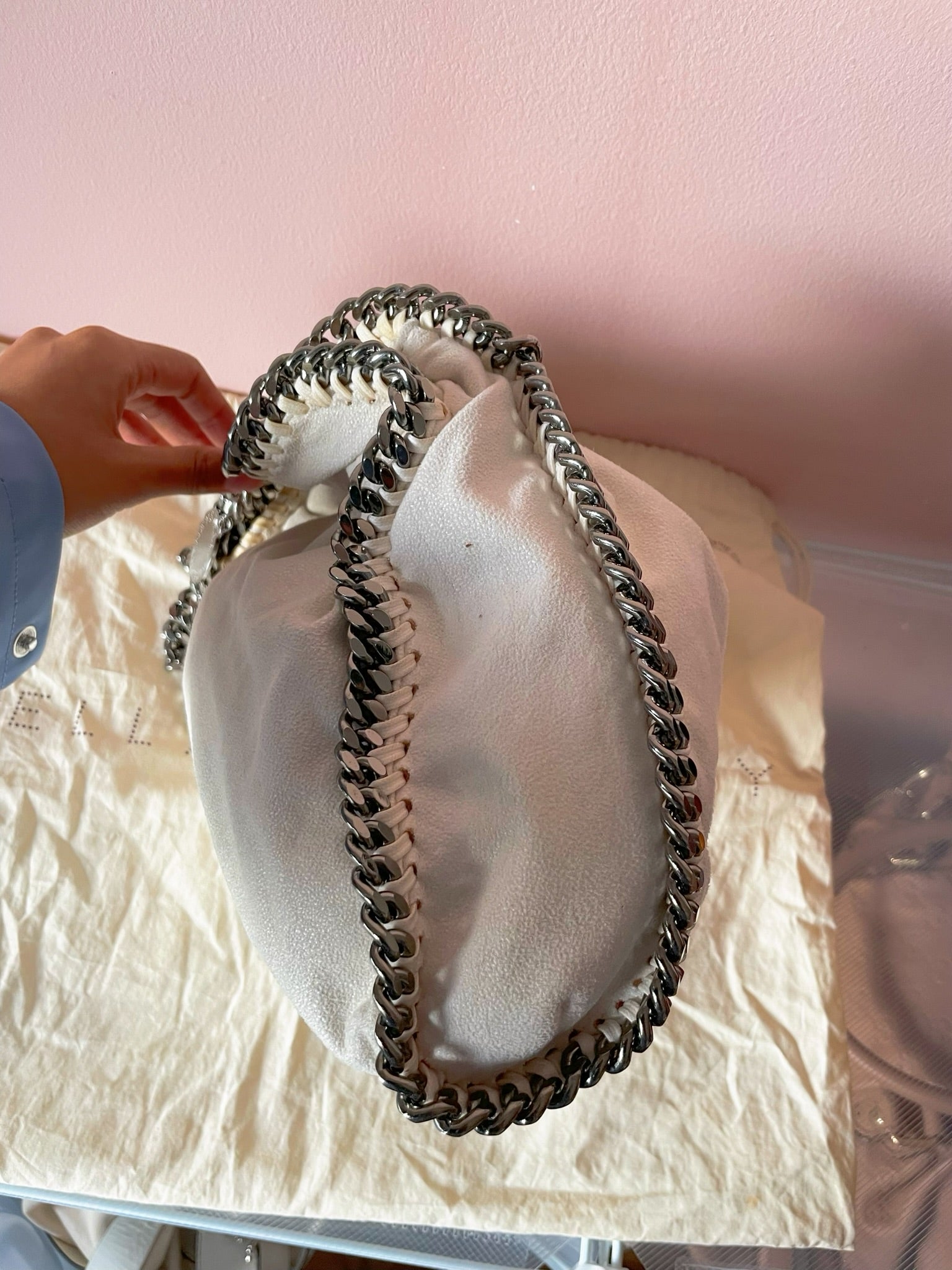 Color: Off-white with silver-tone hardware